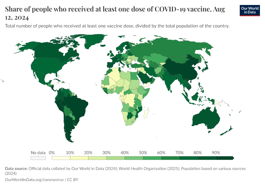 Edouard Mathieu, Hannah Ritchie, Lucas Rodés-Guirao, Cameron Appel, Daniel Gavrilov, Charlie Giattino, Joe Hasell, Bobbie Macdonald, Saloni Dattani, Diana Beltekian, Esteban Ortiz-Ospina, and Max Roser (2020) - “Coronavirus (COVID-19) Vaccinations” Published online at OurWorldinData.org. Retrieved from: 'https://chart-preview-extension.owid.pages.dev:8789/20260212-063327/covid-vaccinations.html' [Online Resource] (archived on February 12, 2026).BibTeX citation