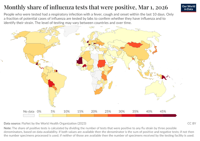 Explore global data produced by the World Health Organization on influenza symptoms and cases.