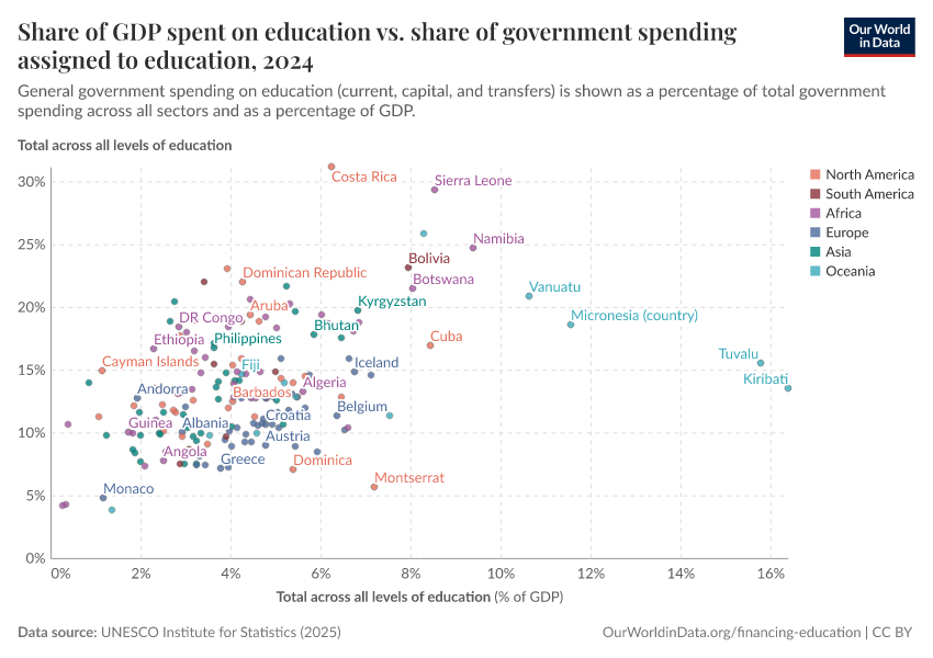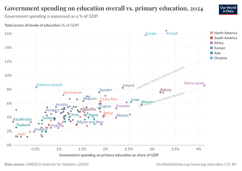Max Roser and Esteban Ortiz-Ospina (2016) - “Education Spending” Published online at OurWorldinData.org. Retrieved from: 'https://chart-preview-extension.owid.pages.dev/financing-education' [Online Resource]BibTeX citation