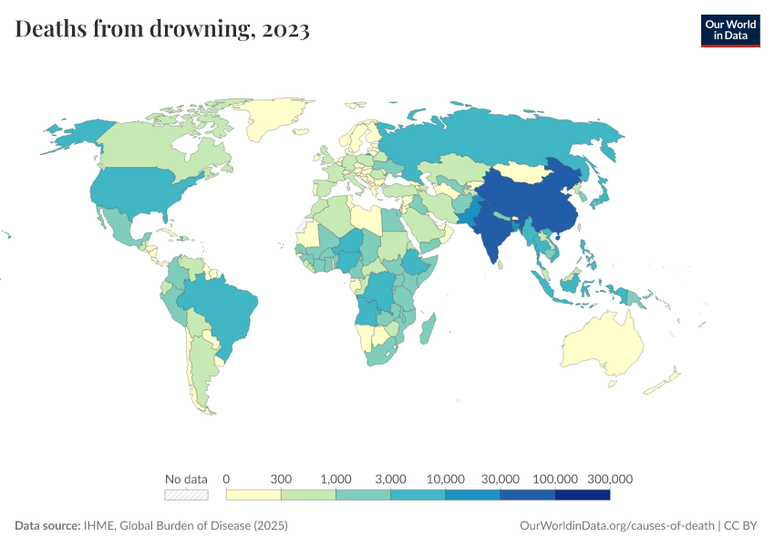 “Data Page: Deaths from drowning”, part of the following publication: Esteban Ortiz-Ospina and Max Roser (2016) - “Global Health”. Data adapted from IHME, Global Burden of Disease. Retrieved from https://chart-preview-extension.owid.pages.dev:8789/20260211-174736/grapher/deaths-from-drowning.html [online resource] (archived on February 11, 2026).How to cite this data
