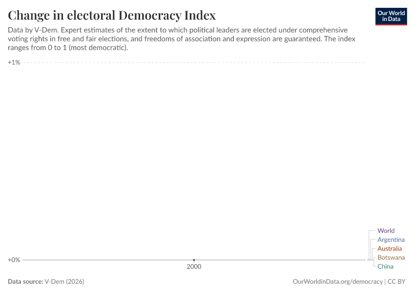 “Data Page: Electoral democracy index”, part of the following publication: Bastian Herre, Lucas Rodés-Guirao, and Esteban Ortiz-Ospina (2013) - “Democracy”. Data adapted from V-Dem. Retrieved from https://chart-preview-extension.owid.pages.dev:8789/20260119-070102/grapher/electoral-democracy-index.html [online resource] (archived on January 19, 2026).
