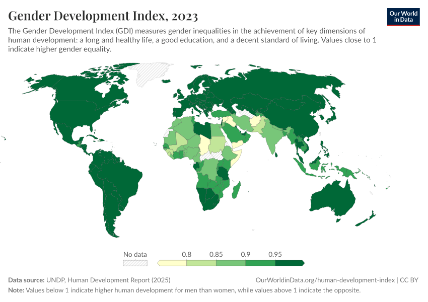 “Data Page: Gender Development Index”. Our World in Data (2026). Data adapted from UNDP, Human Development Report. Retrieved from https://chart-preview-extension.owid.pages.dev:8789/20260119-065148/grapher/gender-development-index.html [online resource] (archived on January 19, 2026).How to cite this data