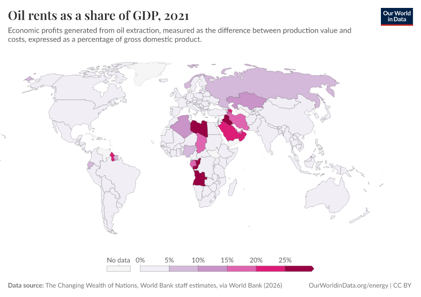 “Data Page: Oil rents as a share of GDP”. Our World in Data (2026). Data adapted from The Changing Wealth of Nations, World Bank staff estimates, via World Bank. Retrieved from https://chart-preview-extension.owid.pages.dev:8789/20260202-181317/grapher/oil-rents-as-a-share-of-gdp.html [online resource] (archived on February 2, 2026).How to cite this data