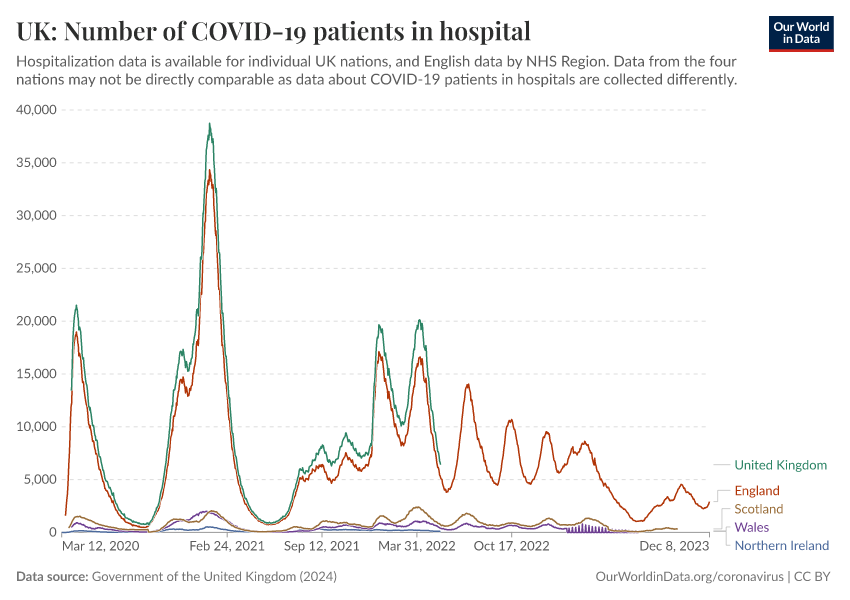 Government of the United Kingdom (2024) – with minor processing by Our World in Data. “UK: Number of COVID-19 patients in hospital” [dataset]. Government of the United Kingdom, “UKHSA data dashboard” [original data]. Retrieved February 12, 2026 from https://chart-preview-extension.owid.pages.dev:8789/20250909-093708/grapher/uk-covid-hospital-patients.html (archived on September 9, 2025).
