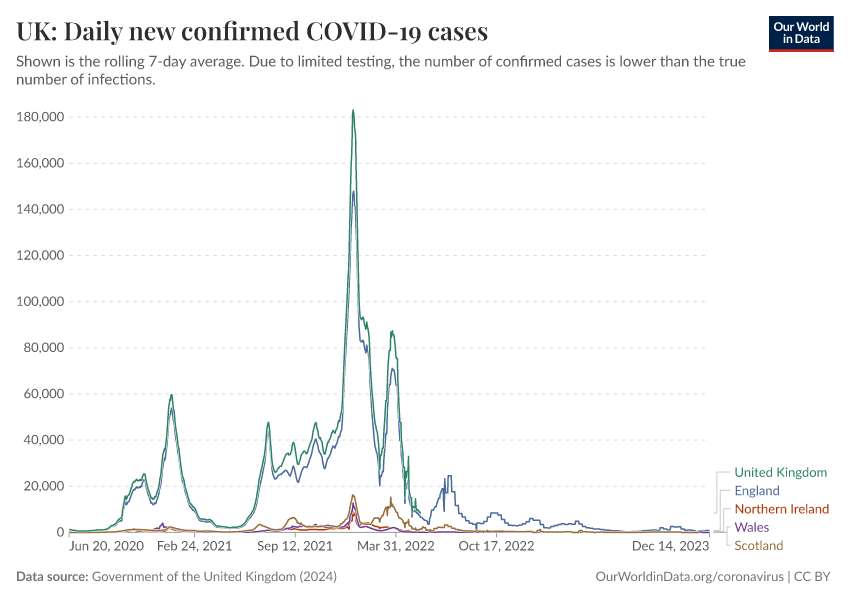 Government of the United Kingdom (2024) – with minor processing by Our World in Data. “UK: Daily new confirmed COVID-19 cases” [dataset]. Government of the United Kingdom, “UKHSA data dashboard” [original data]. Retrieved February 12, 2026 from https://chart-preview-extension.owid.pages.dev:8789/20250909-093708/grapher/uk-daily-new-covid-cases.html (archived on September 9, 2025).