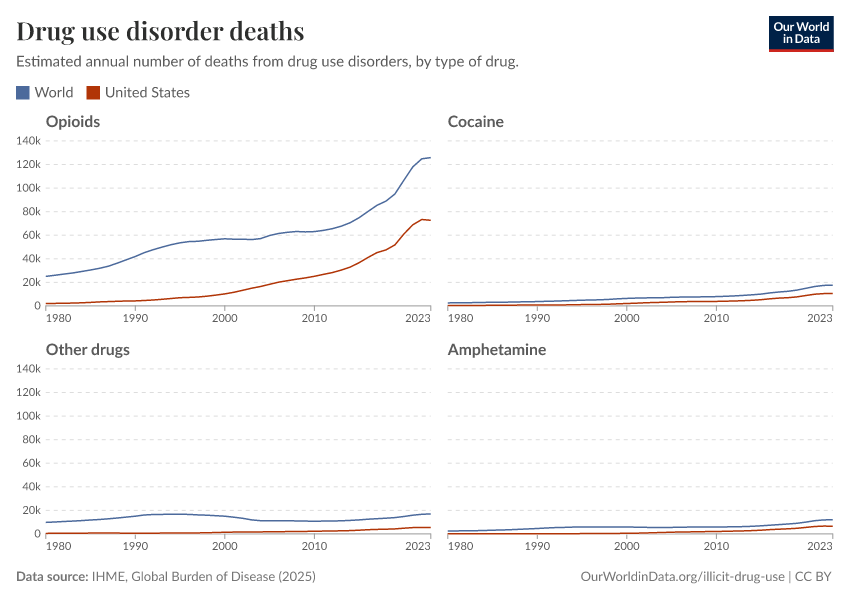Hannah Ritchie, Pablo Arriagada, and Max Roser (2022) - “Opioids, Cocaine, Cannabis, and Other Illicit Drugs” Published online at OurWorldinData.org. Retrieved from: 'https://chart-preview-extension.owid.pages.dev/illicit-drug-use' [Online Resource]BibTeX citation