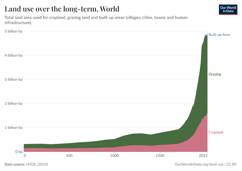 Hannah Ritchie and Max Roser (2019) - “Land Use” Published online at OurWorldinData.org. Retrieved from: 'https://chart-preview-extension.owid.pages.dev/land-use' [Online Resource]BibTeX citation