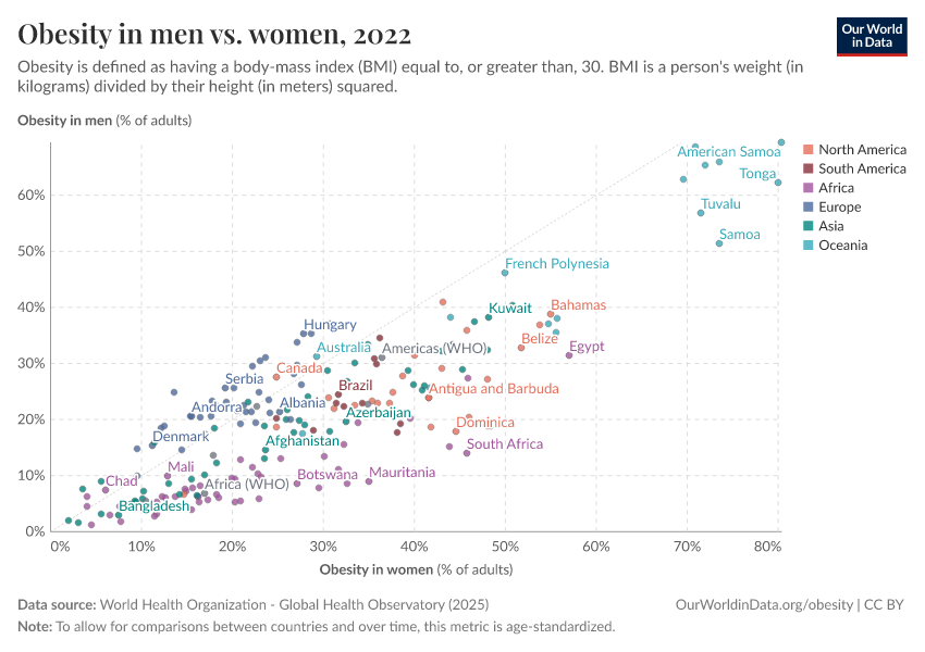 Hannah Ritchie and Max Roser (2017) - “Obesity” Published online at OurWorldinData.org. Retrieved from: 'https://chart-preview-extension.owid.pages.dev/obesity' [Online Resource]BibTeX citation
