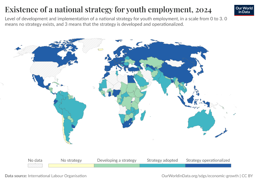 This indicator is based on a classification system developed by the International Labour Organization to measure the extent to which a country has a developed and operationalized national strategy for youth employment.