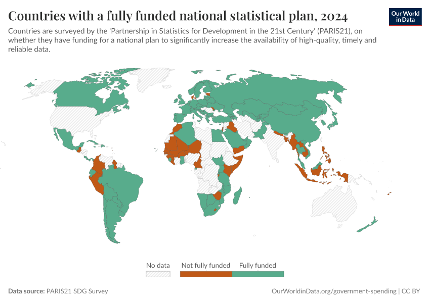 This indicator measures the number of countries with a fully-funded statistical plan, differentiated by source of funding.